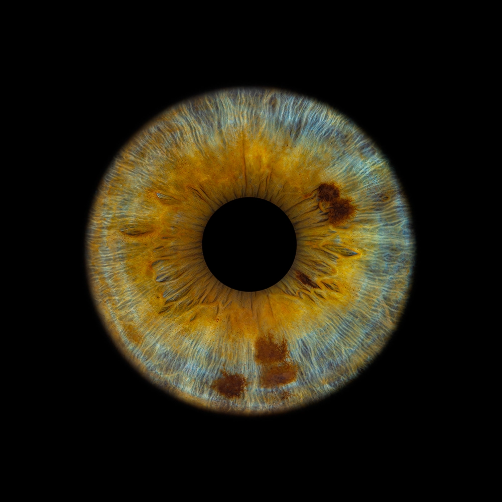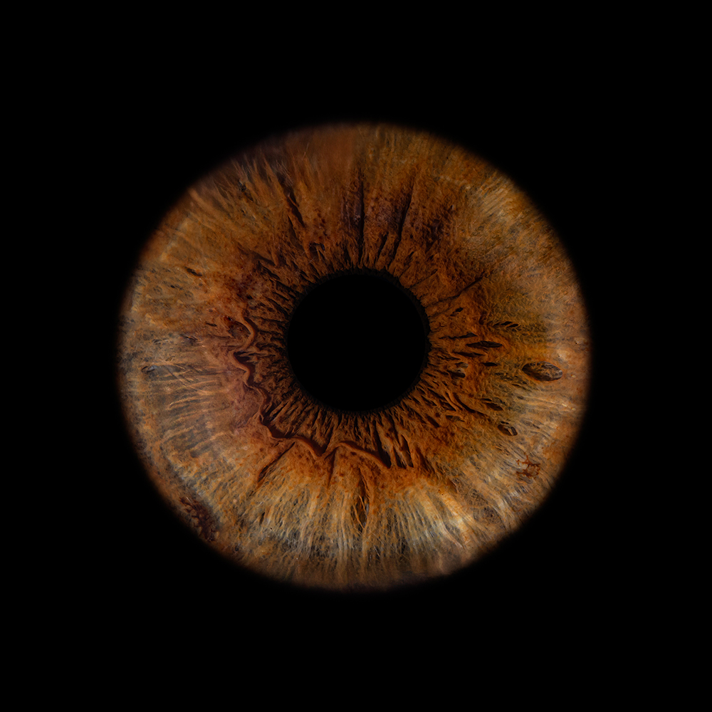 Ik maak elke irisfoto met gecontroleerd licht in de studio en werk het resultaat daarna met de hand af. Dat is het verschil: geen massaproductie, geen automatische filters, geen AI-samenstelling. Elke foto krijgt tijd. Ik kijk naar kleur, contrast, scherpte en de kleinste details, totdat het klopt — precies zoals ik het voor mezelf ook zou willen hebben.